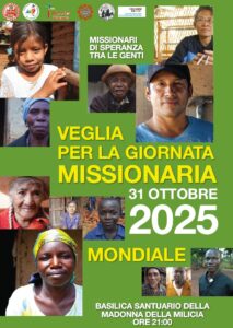 Sarà la Basilica Santuario Madonna della Milicia ad ospitare, venerdì 31 ottobre 2025 alle ore 21.00, la Veglia per la Giornata Missionaria mondiale. L’appuntamento è promosso dal Centro Missionario Diocesano, dal Servizio diocesano di Pastorale Giovanile, la Caritas Diocesana e l’Ufficio Migrantes.